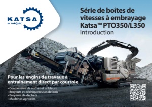 Série de boîtes de vitesses à embrayage Katsa™PTO350/L350 Introduction Pour les engins de travaux à entraînement direct par courroie • Concasseurs de roches et cribleurs • Broyeurs et déchiqueteuses de bois • Broyeurs de déchets • Machines agricoles